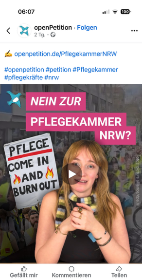 Die Petition gegen die Pflegekammer bei openpetition.de hat dazu ein sehenswertes Video veröffentlicht.